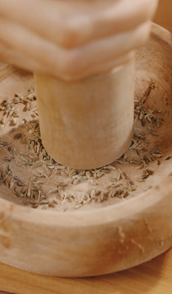 Preparación Comenzamos por triturar las semillas con un mortero. También puedes usar un molinillo eléctrico.